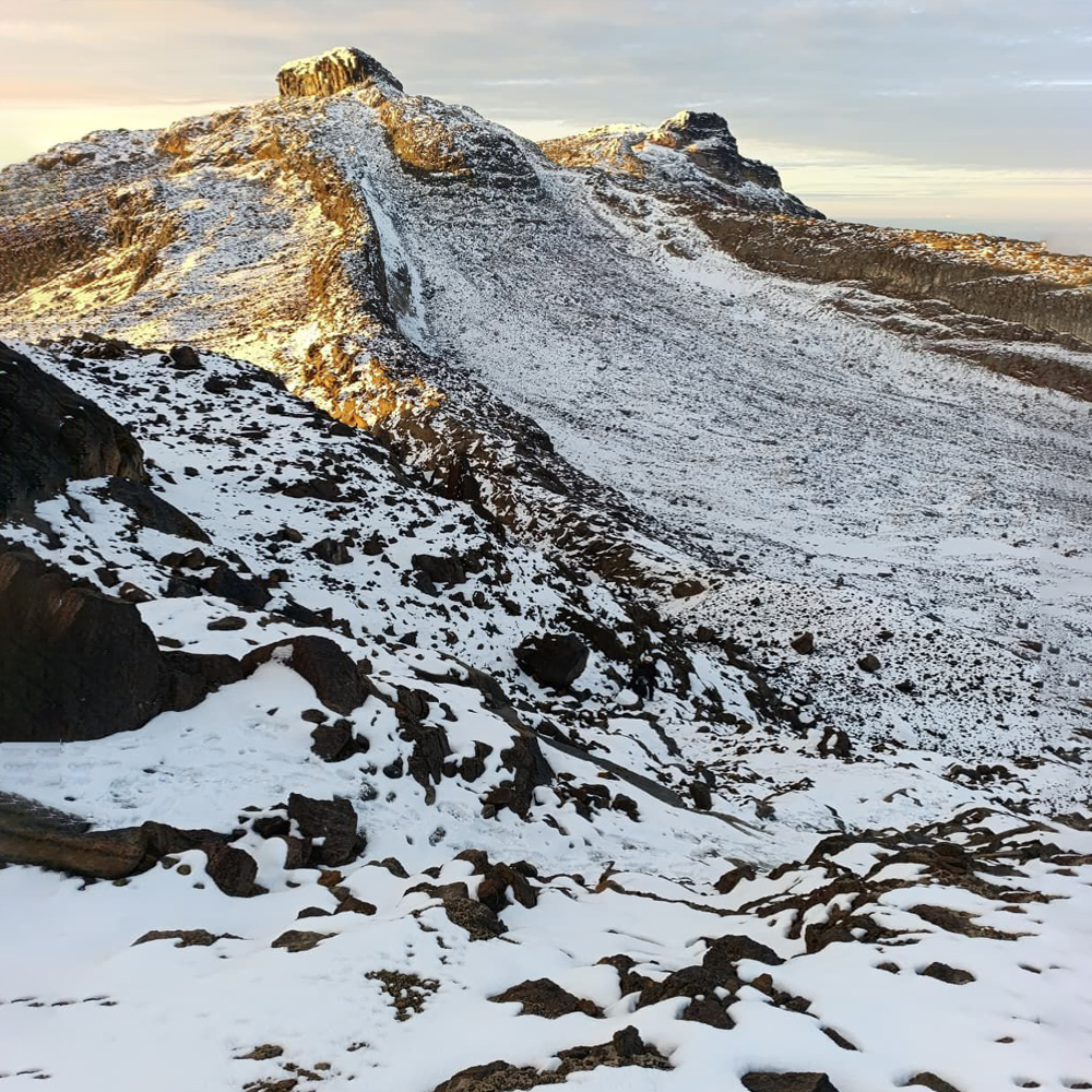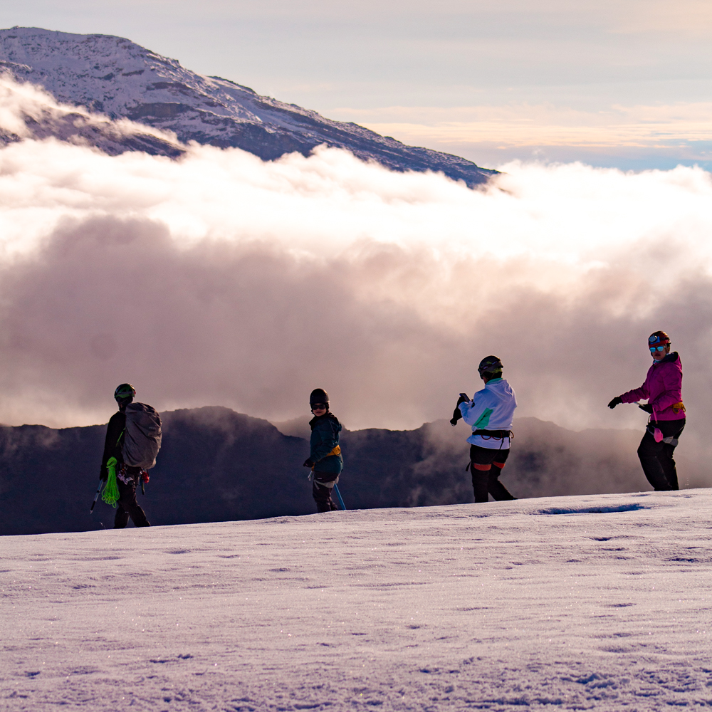 2:00 am Hora de salida. El vehículo nos estará esperando para continuar 10km más sobre la carretera hasta llegar a los 4100m, punto de partida a la cima. Posteriormente iniciamos la travesía por 3,7km en medio de la transición del ecosistema de páramo. Este ascenso será en medio del amanecer hasta el borde glaciar, prepararemos equipos personales con la ayuda de nuestros guías y emprenderemos el ascenso a la cima.